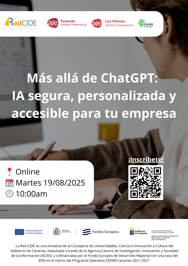 Webinar sobre “Más allá de ChatGPT: IA segura, personalizada y accesible para tu empresa” – 19 de agosto agosto 5, 2025 AJE_PUBLI Jornadas Red CIDE No comments yet Webinar: “Más allá de ChatGPT: IA segura, personalizada y accesible para tu empresa” 19 de agosto 2025 | 10:00 AM | Plataforma Meet Organiza: Centro Red CIDE […] Read more